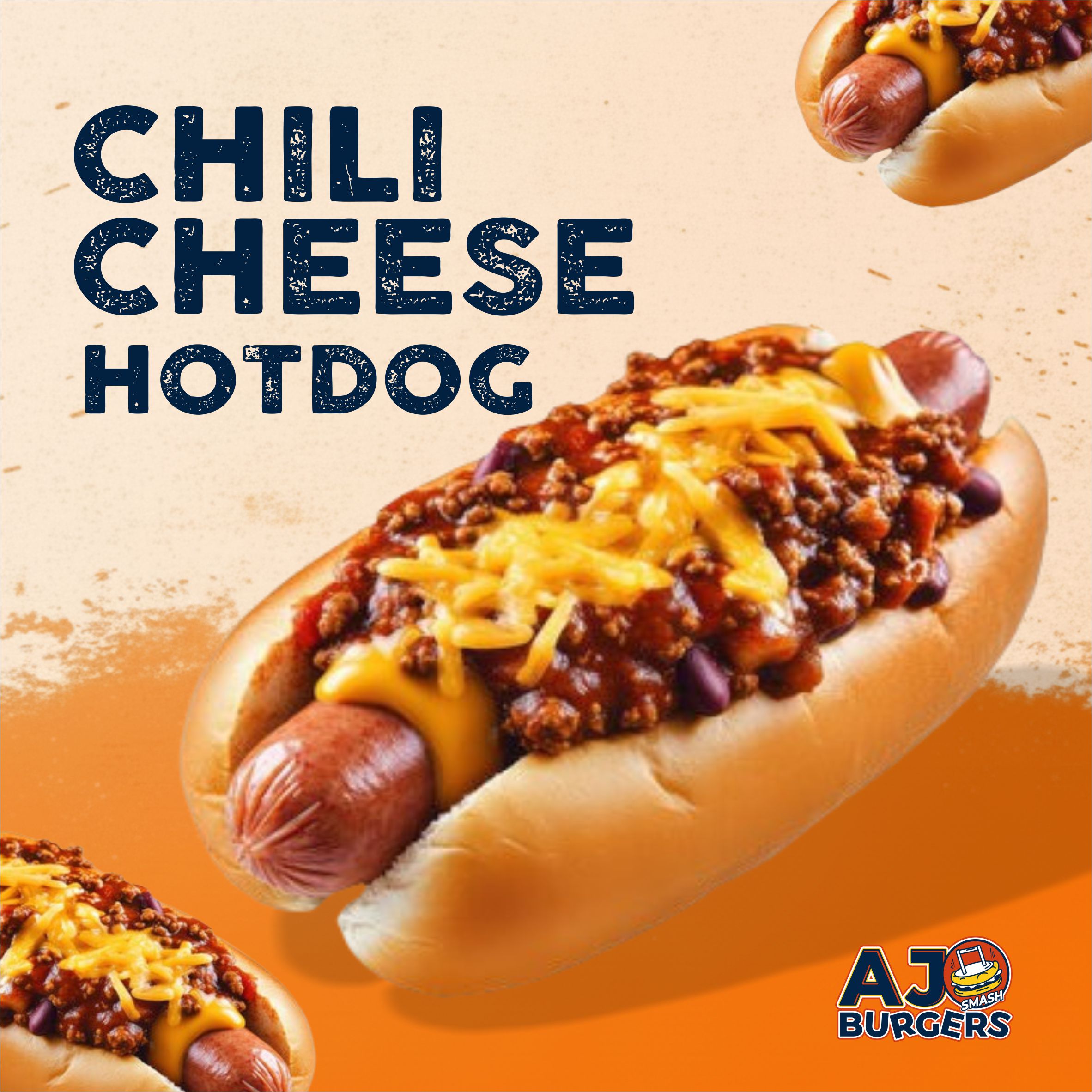 Beef, homemade chili con carne, cheese, onion, mustard, tomato ketchup